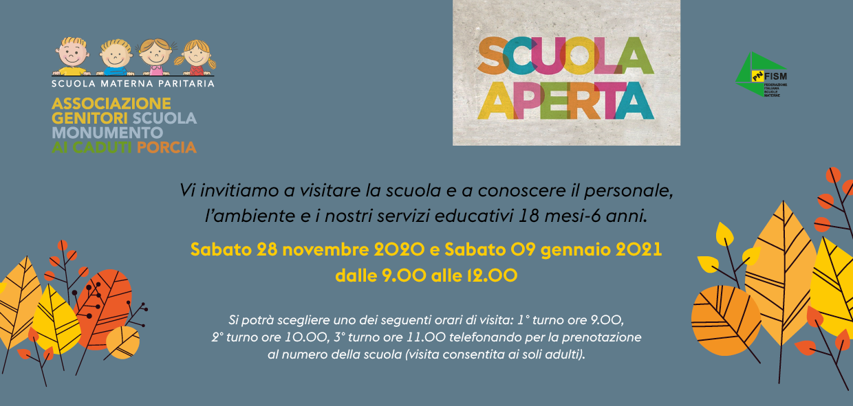Scuola aperta - 3 turni (ore 9.00, ore 10.00, ore 11.00), telefonare a scuola per prenotare la visita!